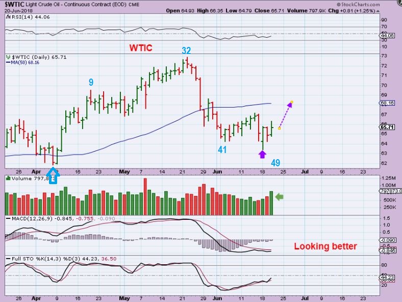 WTIC  –  Oil seems to have a dcl at day 49.  Do Oil & Energy stocks look Bullish?   Yes. Notice OIL dropped on deeply into day 41, small bounce, and another lower low…