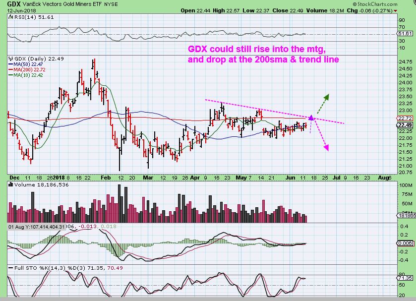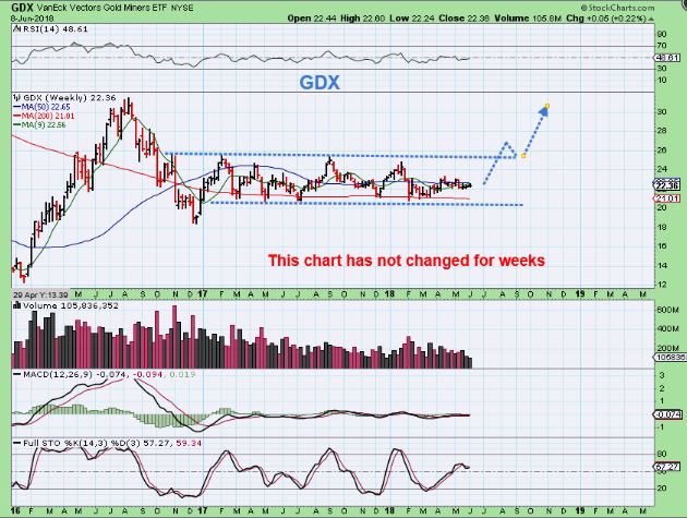 GDX  – If this drops, it will soon lead to a major buying opportunity, because ‘time’ is running out. If it breaks out higher & runs, it is a major buying opportunity starting at that point.