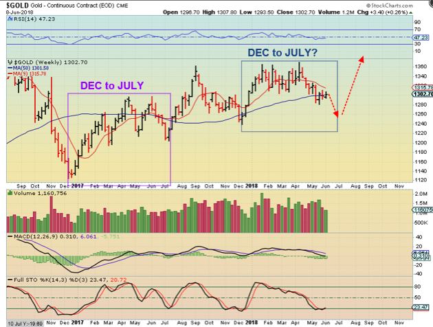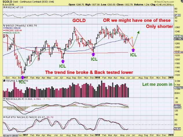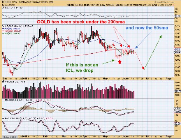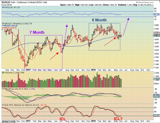 GOLD ICLS-  I have been posting this chart since March to highlight & continually remind us of that average length of time from  ICL To ICL, so that we do not get lulled to sleep.  June is 6 months, July would be 7.  Again, we had 7 months DEC to JULY in 2017, will that repeat?