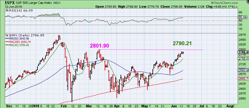The SPX – Close, but not yet.  We did not rise up over that 2801.90 to make me a bit more comfortable. Maybe we’ll get a FED SPIKE?  That is only 11.69 points from Mondays highs.