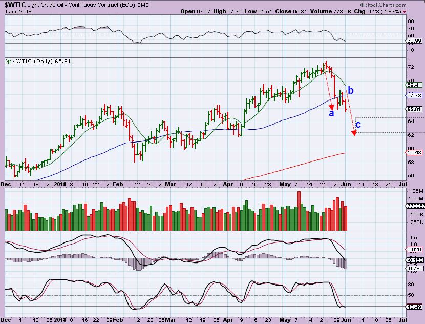 WTIC DAILY June 1 – I was looking for an a-b-c drop on the daily dip for Oil