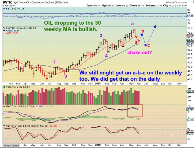 WTIC  JUNE 5 –   At this point, we did get an  a-b-c type drop on the daily, and this was in the timing for a dcl (swing low).