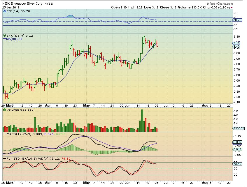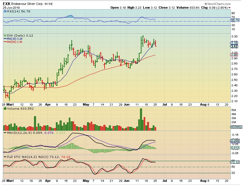 EXK – The 50sma may be a good place to look for a reversal & add.