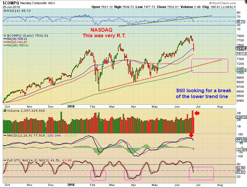 NASDAQ – June 18th, I showed the bearish rising wedge forming on the SPX & NASDAQ . Read the chart.