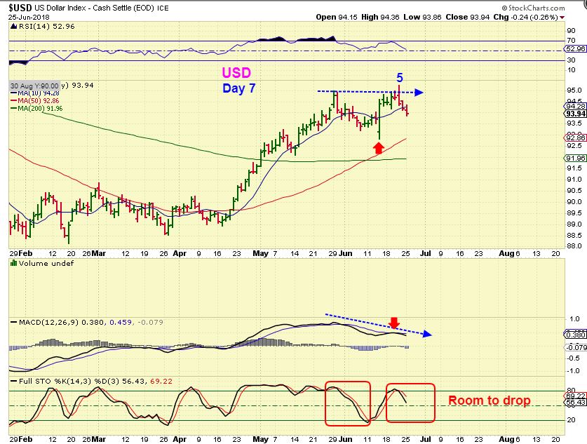 USD – This MACD shows weakness on the last push higher of the USD. This could be a short term double top. With a peak on day 5, this should be the expected L.T. Daily cycle forming.