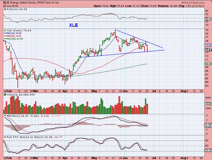 XLE – The XLE is still weak and did not follow OIL higher. That makes me wonder about Oil and whether it is doen selling off too. XLE has the look that it wants to drop further. OAS, WPX, and ERF dropped Monday. SO I am watching Oil & Energy for a bit more clarity, but…