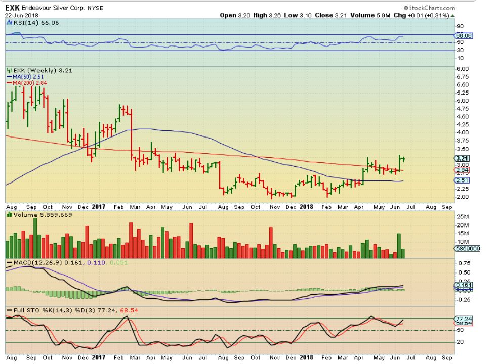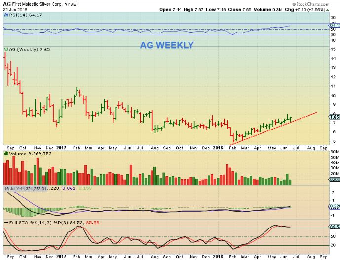 EXK WEEKLY  – I also recommended & own EXK since before it broke out.  You can see that it is holding the highs during a Silver drop too. Miners are acting bullishly heading into an ICL.