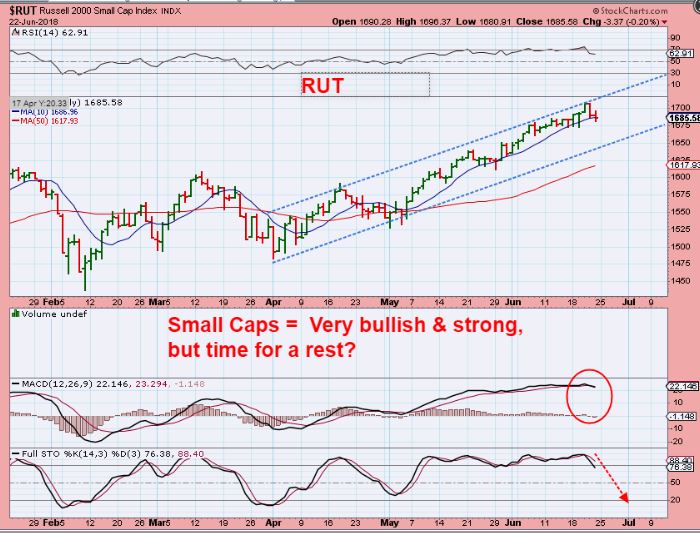 RUT – Very strong, but it may be topping too, so I would continue to allow positions to run, but I’m cautious and must have stops. I also like to lock in 1/2 of my gains when I see situations like this.