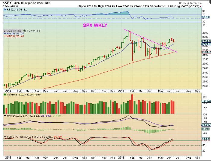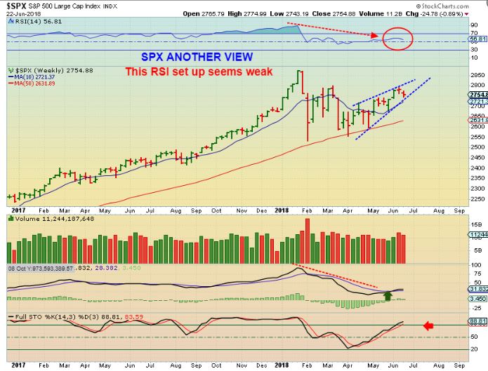 SPX WEEKLY  #1 – The weekly view has a swing high in place. I would expect at least a tag of the 10ma, even though markets tried to bounce this week.