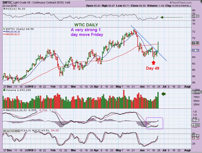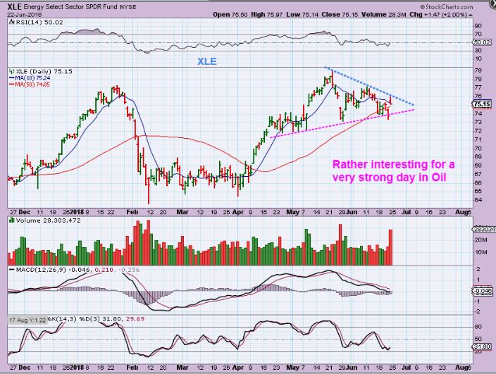 XLE– The XLE popped and dropped Friday.  It couldn’t break out on a day when OIL was up over 4%?   THAT is odd.  I looked at many Oil stocks like OAS, WPX, MRO, VLO, DNR, etc .  They do look good, so I will continue to watch this sector this week.