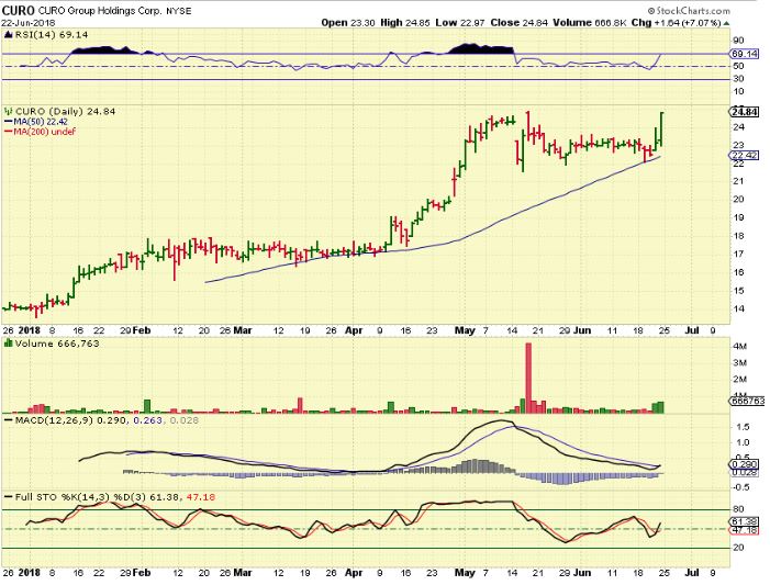 CURO– It did have nice follow through on Friday.  It has a $30 price target, and volume seems to be confirming this move.