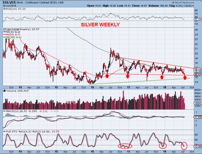 SILVER WEEKLY – At the lows? Last JULY we got a quick slam down to a deeper low.