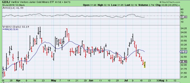 GDXJ HAD A BULLISH REVERSAL and was at $32.19  MIDDAY, BUT WOULD IT HOLD UNTIL THE CLOSE?