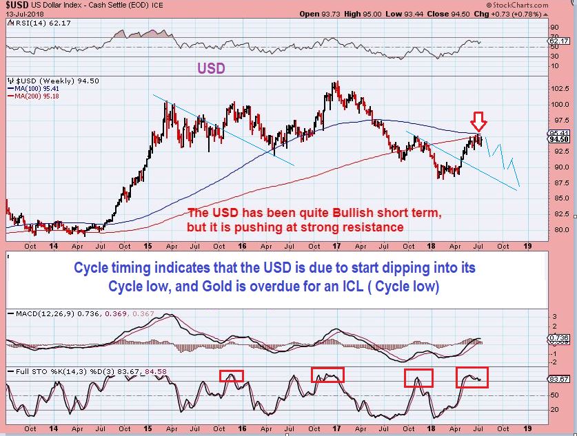 USD WEEKLY- US at resistance as long as it remains below the 95.50 area or close to it.