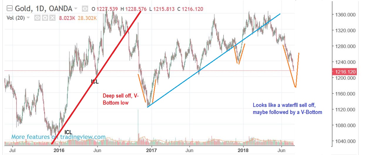 EDIT UPDATE –   CURRENT GOLD AND A POSSIBLE WATERFALL DROP AND V-BOTTOM