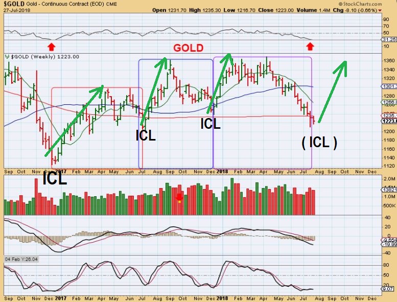 GOLD WKLY – The ‘Time’ for an ICL is here. Note: The DEC 2016 ICL ran to July 2017. Are you tired of waiting for it? I am just as tired of waiting for it, because I also have to discuss it every day 🙁 They are very rewarding when they finally do arrive. I can’t wait to discuss the rally that comes out of these lows. Look at the prior 3 ICL rallies. I am so ready for that.
