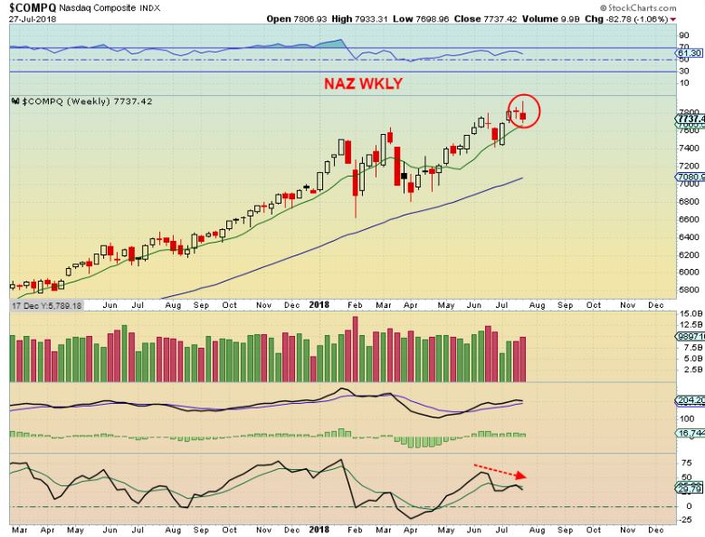 Think about it: We just printed the best GDP #’s in years, and all of the markets ran up and then reversed, dropping into the close Friday. We are also seeing the Big Fang companies report their earnings, and we’ll discuss that in a minute too, but massive winners popped up & sold off. Recall that my July 25th report was entitled “Beautiful At The Top”. It seems contrary to believe so, but when all the news is nothing but bullish and positive – that is often when a top forms. When all the news is bearish and ugly and fearful, that is when the Lows form. Let’s continue…