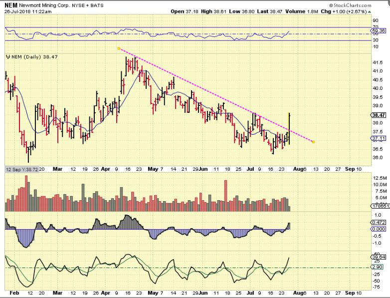 NEM– NEM also shot up & broke out, so we do have some good news on the precious metals earnings. We also saw some Misses in NGD, GG, ABX, however…