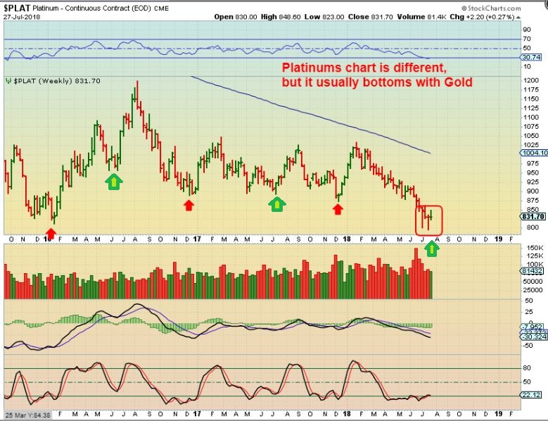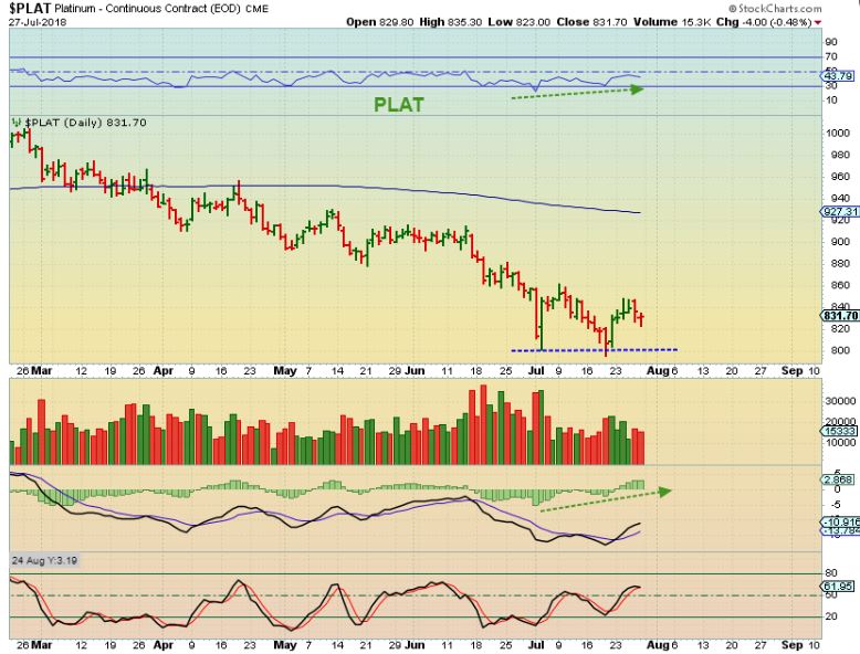 PLATINUM DAILY – This looks like a double bottom with divergence, at the same time that GOLD bottomed.