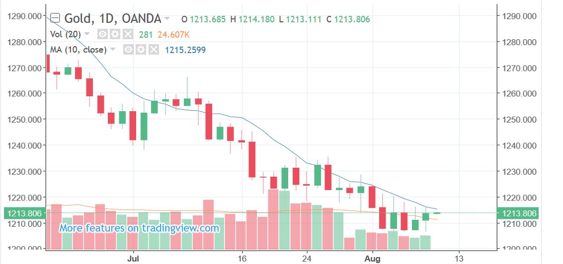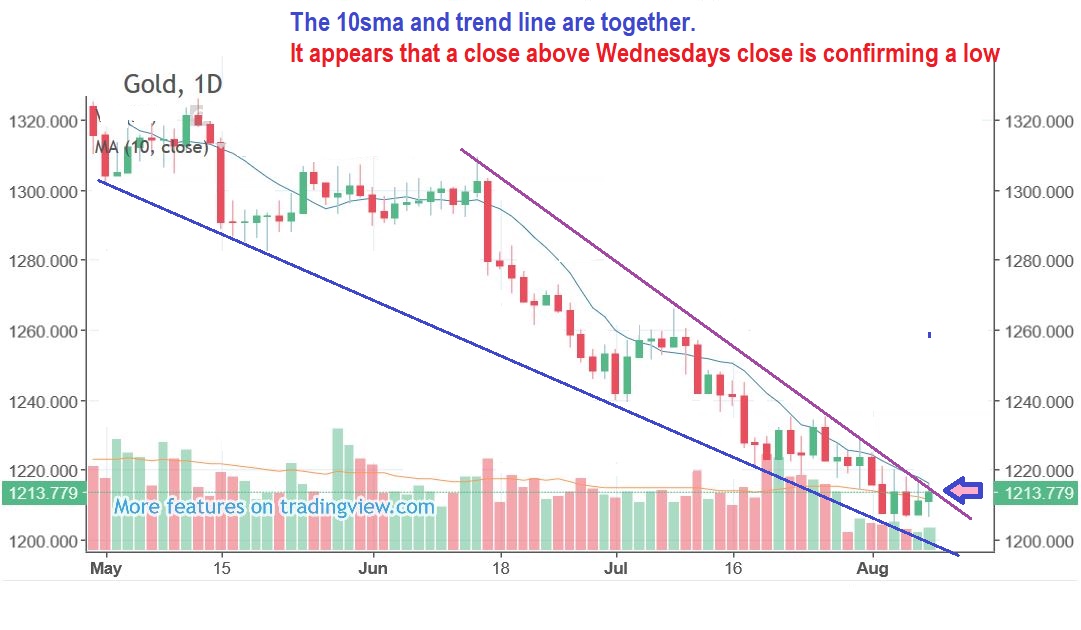 GOLD  – This is so close to breaking above the 10sma and trend line, that a move to $1220 should be enough to act on.  Yesterday was a gravestone Doji,  so we were looking to see if Gold would move higher,  and it did  (a little).