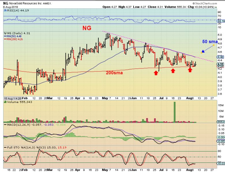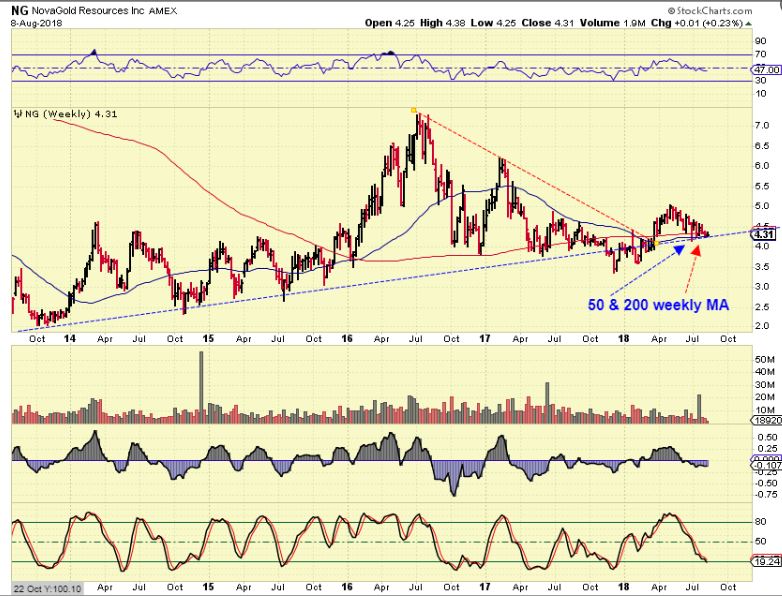 NG WEEKLY – Nova Gold has actually been in a slow uptrend for years now. It ran up 100% in 2016, and has been consolidating those gains, landing back down on support with a small Dec shake out.