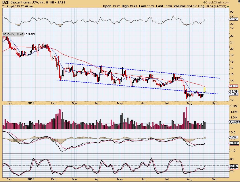 BZH – Through all of 2018 Beazer has sold off, but it Popped yesterday too. This is a small base & a pop.