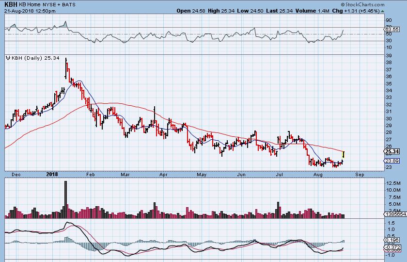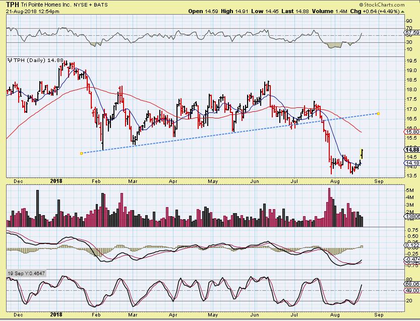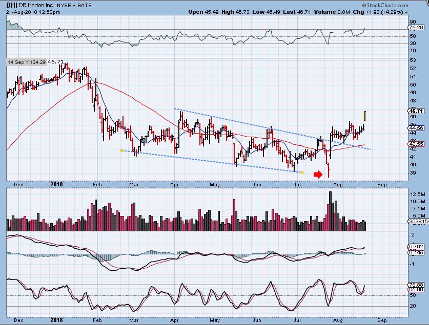 DHI – All of August has been constructive off of the capitulation lows. This is a bullish chart and may be what you can expect from BZR, TOL, and others.