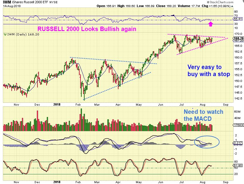 IWM – For days I’ve been saying that the markets looked mixed, and this looks like a bullish set up. This was AUG 14th.