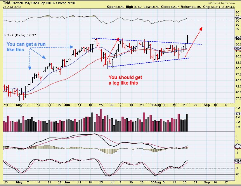 TNA – I have recommended TNA – a 3x Bull that doesn’t move scary fast, but can get some decent gains. I posted this in the comments from 10 a.m. as it was breaking out