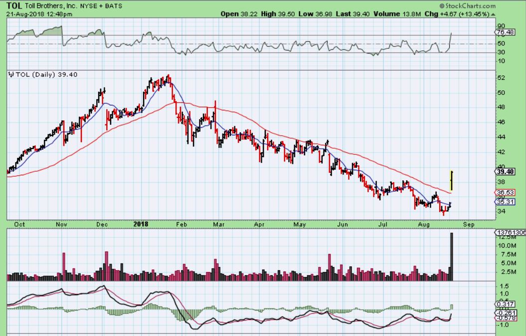 TOL – Look how bearish Toll Brothers looked in all of 2018. Yesterday at lunchtime I noticed a large Pop in housing. You can see the ‘timestamp’ in the upper left. These are not closing prices on the next 5 charts.