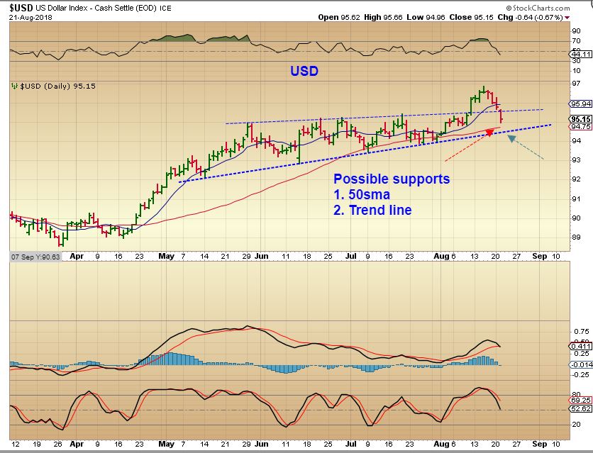 USD – Dropping to support areas. Can they hold the USD up? Will FOMC Minutes hold support or break support?