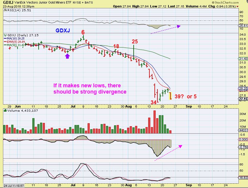 GDXJ – GDXJ dropped and there is a chance that the lows were going to be taken out, so we look at a day 34 low as a possibility, day 39 if it breaks down from here. It could be a very bried shake out and not a second FLUSH. Why do I say that?…
