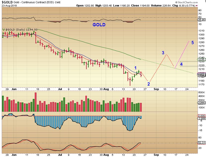 GOLD  – Gold dropped and I am watching to see if the lows hold.  I personally think that they should, because the timing ( daily count)  is very late for Gold.  Maybe we see this as the USD bounces out of a dcl.