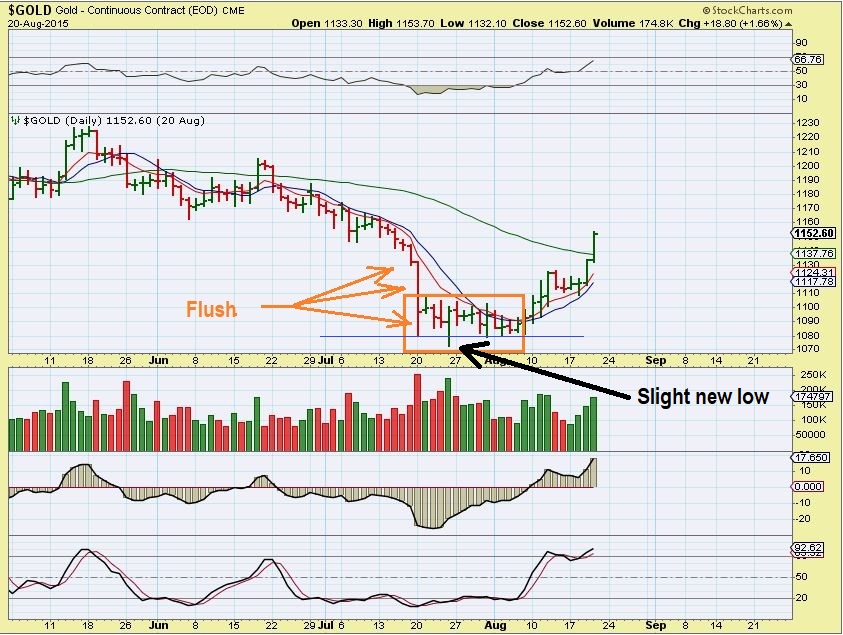 GOLD –  Gold did the same thing, shaking early buyers out.  Buyers were no doubt nervous of a second FLUSH leg down that never came.