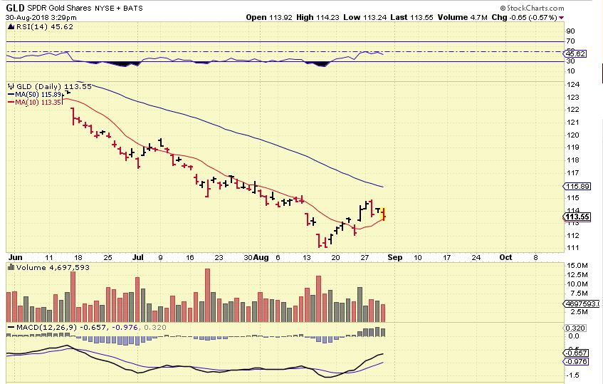 GLD – I was away from the screen yesterday and when I read the comments section at the end of the day, people were depressed, afraid, Gold was down, we don’t have an ICL, it’ll never come, etc. etc. I quickly looked up GLD thinking that GOLD must be down $30 & took out the lows?? … Nope, it was bouncing off of the 10sma. Gold is $40 off of the lows.