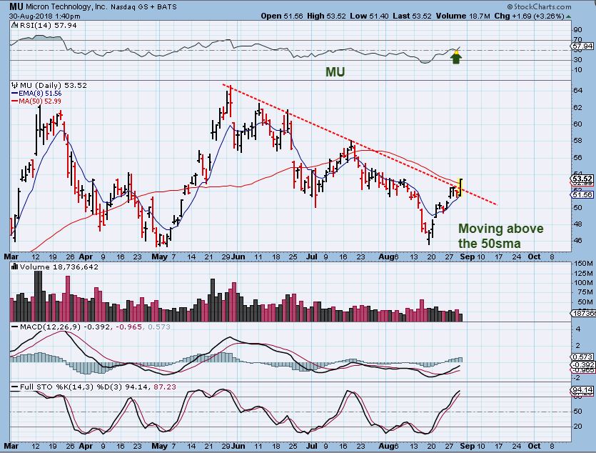 MU – Even though the General markets broke higher and dropped back Thursday, some TECH stocks still remained Bullish. MU is one for example. If it holds above the 50sma & moves higher, it could be bought with a stop under the 50sma ( or 10sma), but if the General Markets sell down, this may be a fake break out.