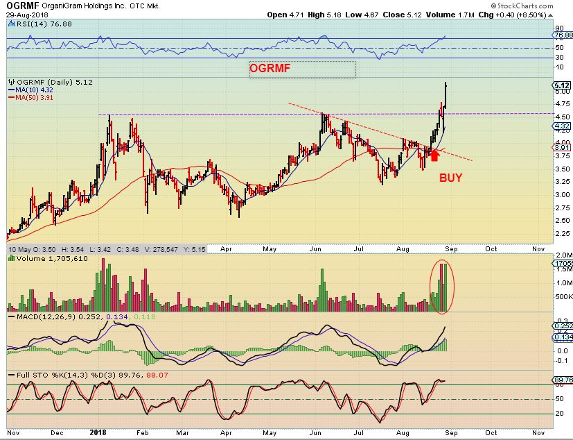 OGRMF Aug 23– Pushing higher toward all time highs.