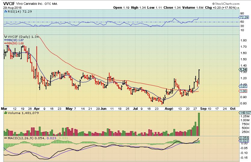 VVCIF  –  It ran up 17.50 % and volume was very big for this one. This is a nice base and I would expect that it can run a lot higher over time.  This may not be an easy ride at times, but…