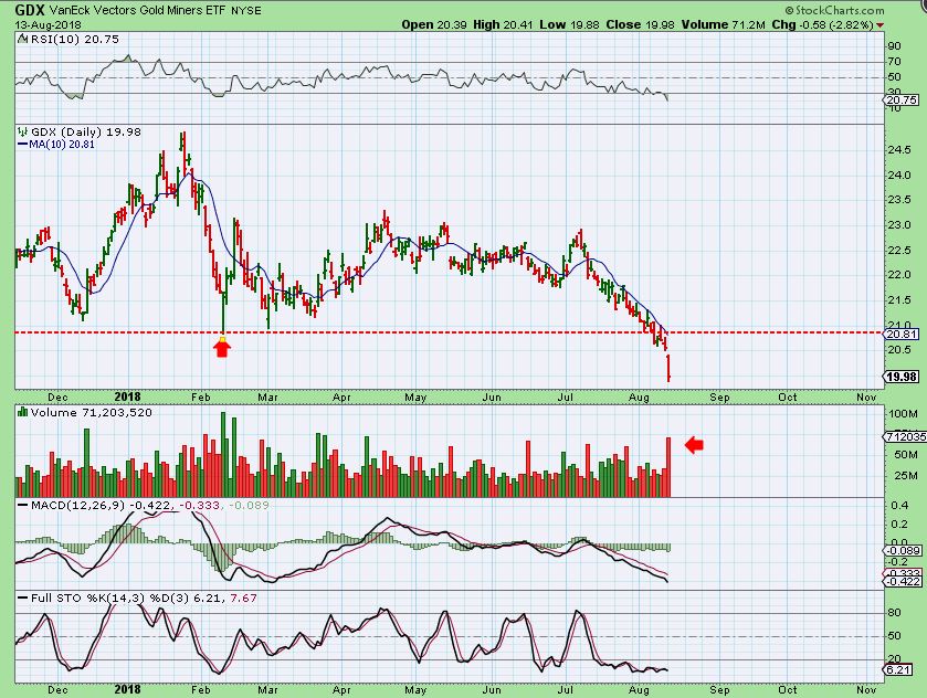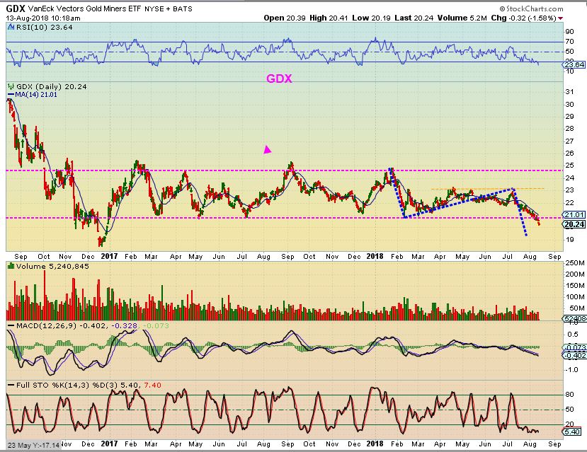 GDX – So this is a measured move for GDX if this current drop was also similar to the Feb drop. Over the last 2 weeks I have mentioned that we could stop run type drop below $20, this comes up just shy of $19.