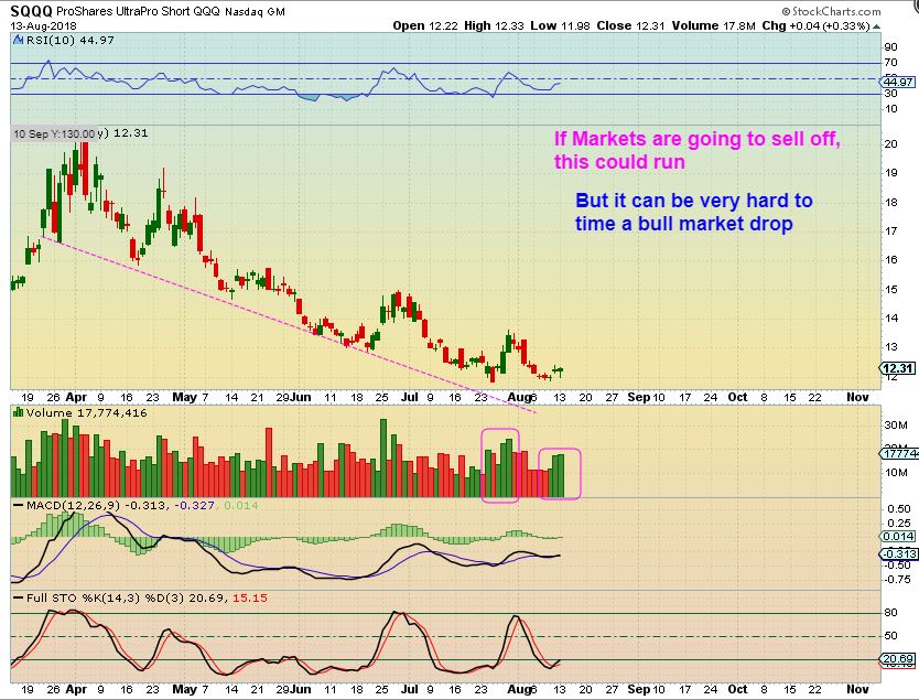 SQQQ – It is hard to short a bull market, but the NASDAQ is about to break below the 10sma too, and should also begin to drop into a dcl, so this might make a nice short term trade. It could be bought until a swing low forms in the NASDAQ.