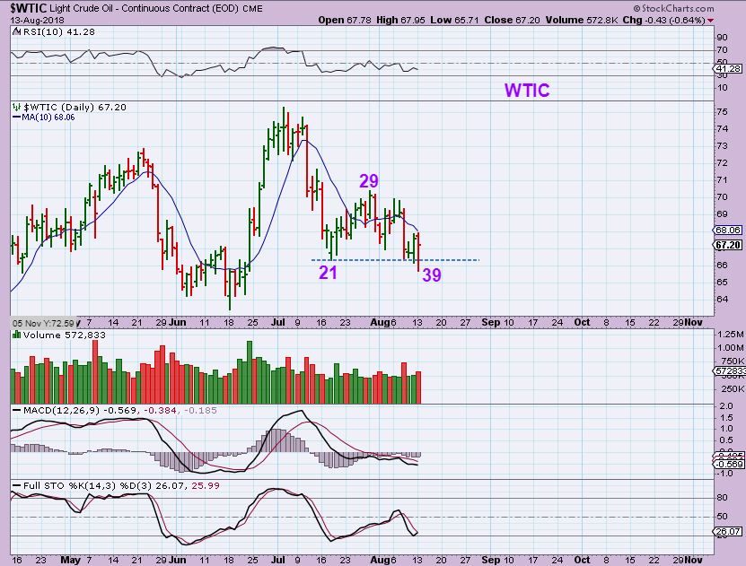 WTIC – Oil dropped sharply, but actually recovered into the close. Day 39 puts it within the timing to put in a dcl , however…