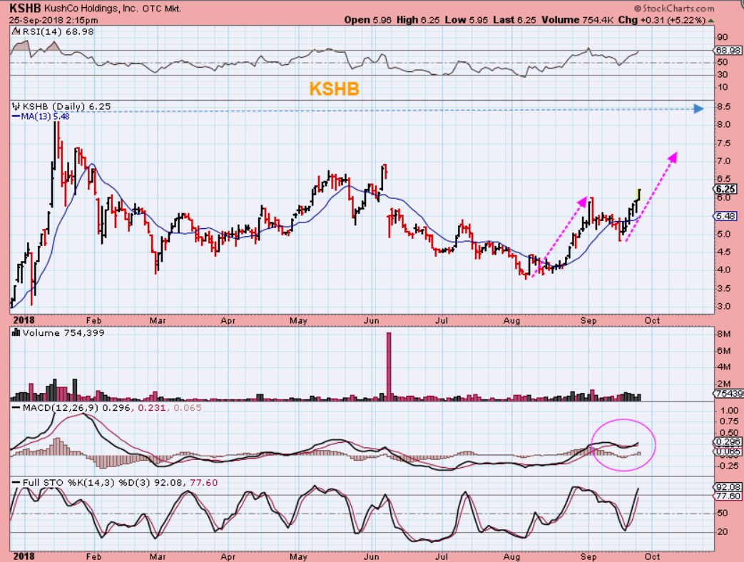 KSHB – It has moved slowly higher day after day since I recommended it here. The upside target is $8.50 or more. % -wise, this has been steady winner.