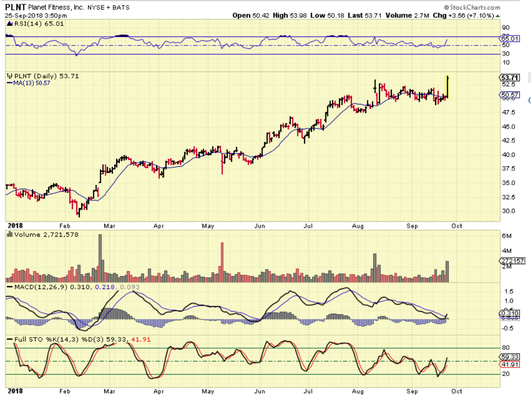PLNT – Planet fitness has a 2 month consolidation break out. In Tech analysis, if the run looks like this, this is a buy & hold. It is close to oversold now, and has been trending higher from Feb