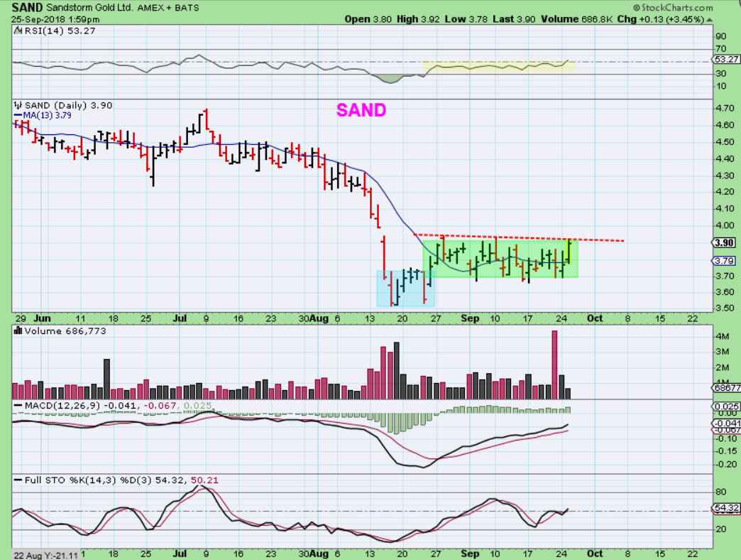 SAND – Another nice base formed, And this is one more thing to watch, to see what happens after the FED MTG. It sold off slightly into the close.
