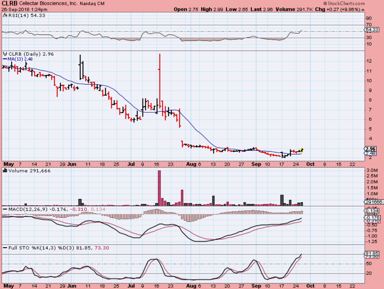 CLRB ( From SOG) – I like long bases with a gap 100% higher, so SOG posted his own version of this stock dropping and I looked at it this way and took a position. If this just fills the gap, it is almost 100% from here. Thx SOG 🙂