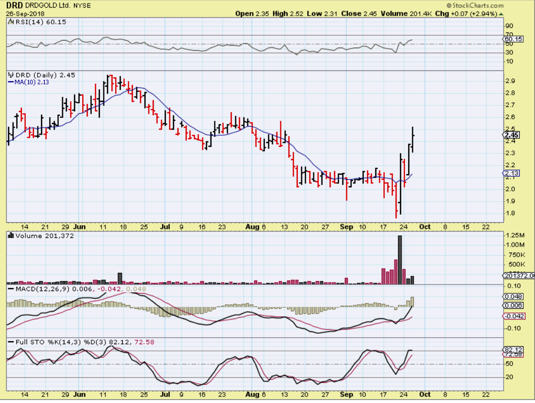 GDX – This MIGHT BE forming an inverse H&S, but I do not like to see a heavy volume drop anytime I am bullish , so…We’ll see what Thursday & Friday brings . IF the lows are taken out ( The Sept lows representing the head) , it would be considered bearish. Your choice: you can sell & watch it, or risk it and stay in and watch it. I am still holding JNUG, but sold 1/2, I was a bit heavy.