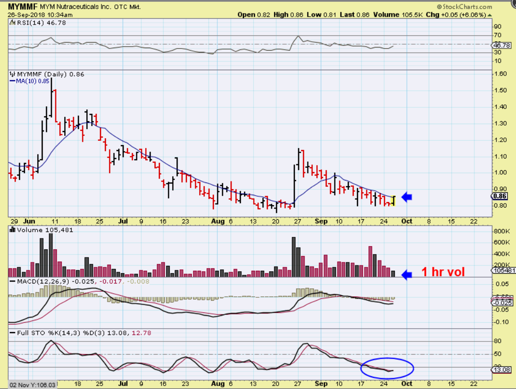 MYMMF – 10:30 a.m. – I was looking for a break of the 10sma or downtrend, and this would be close enough, but to be safe, it may be best to wait until the close.