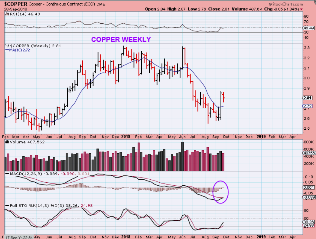 COPPER WEEKLY – Copper seems to have bottomed as it has Popped higher out of an ICL. Notice that Copper spent 4 weeks at the bottom & then the Pop. Maybe Gold will do that?