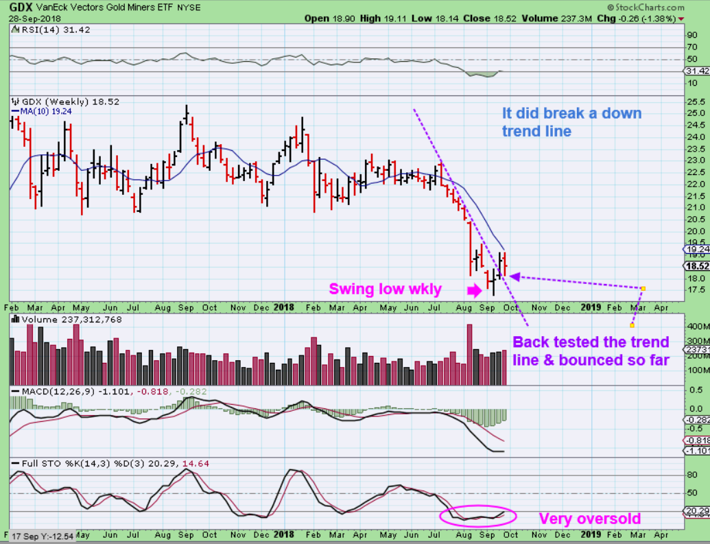 GDX #2 – The Bullish way to look at GDX WEEKLY. We DO have a trend line break & a swing in place on a weekly.