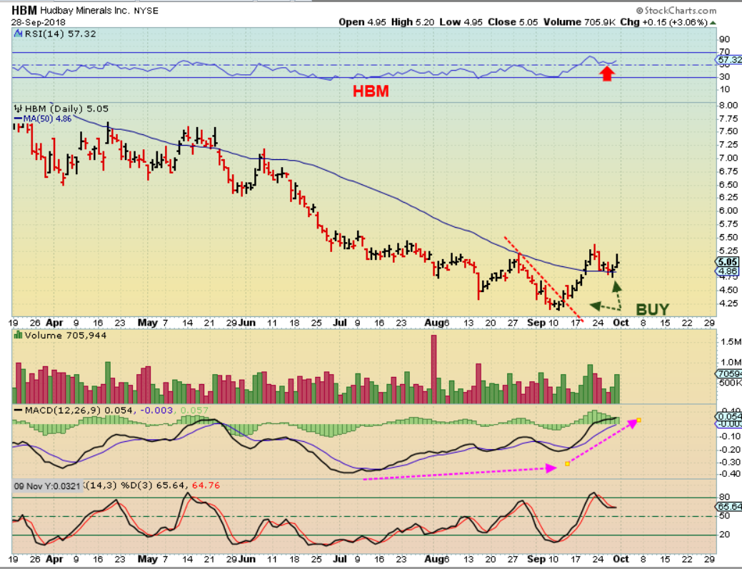 HBM – This is another Buy Point, since it has successfully back tested the 50sma & the RSI held too. Look at that strong MACD move.